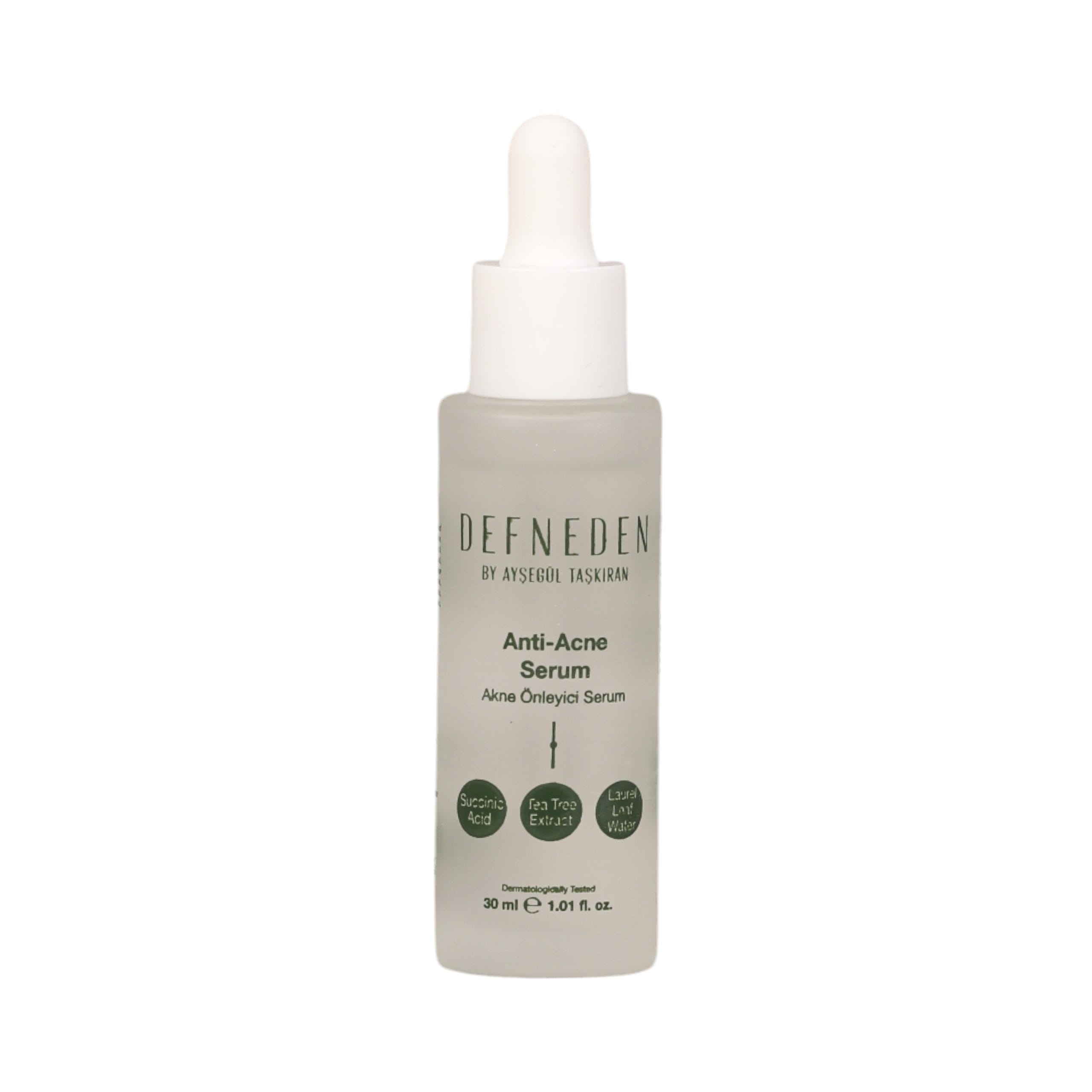 Defneden Sivilce Karşıtı Serum, defne yaprağı özü, salisilik asit, çay ağacı yağı ve niacinamide kombinasyonuyla bu döngüyü kırmak için özel olarak formüle edilmiştir.